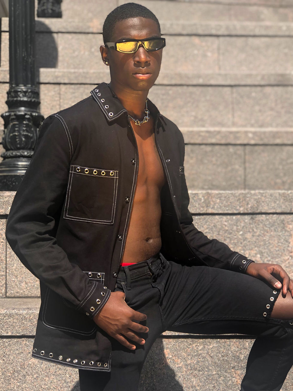 LONGLINE GROMMET TRIM DENIM JACKET
